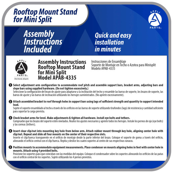 Appli Parts APAB-4335 Rooftop Mount Stand for Mini Split 9000 to 24000 BTU Supports 335 lb Adjustable 10 to 45 Degrees Includes Anti Vibration Pads and Full Installation Kit