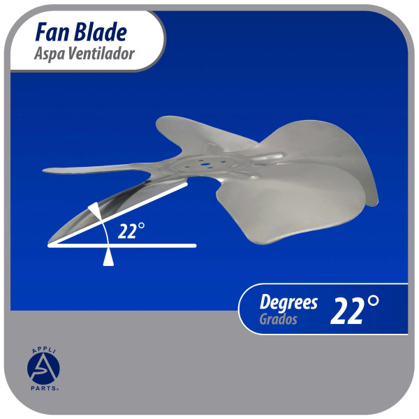 Appli Parts APFB-A12CCW Aluminum Fan Blade 12 in, 300 mm, CCW, 22 degrees, hubless 5 holes, 5 wings