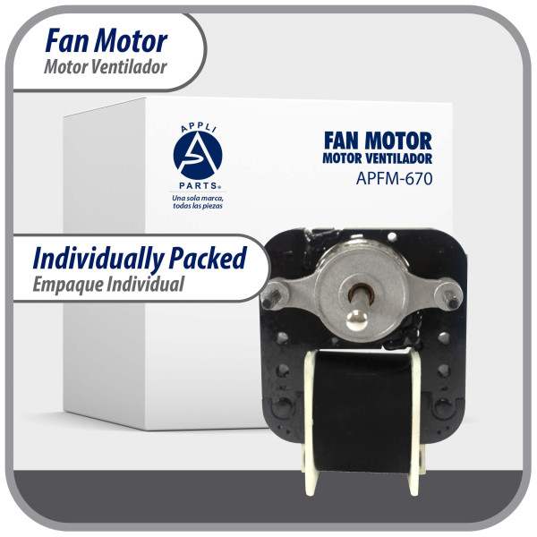 Appli Parts APFM-670 1/130 Hp Fan Motor, 110 V, 50/60 Hz, 3000 rpm, Reversible rotation, Universal Fan Motor Kit, Shaft 3/16 in by 1-1/4 in long includes 2 Fan Blades 4 and 5.5 in, UL, NUV-670, SM670