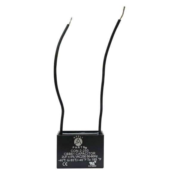 Appli Parts CAP-2-250-2C Fan Capacitor 2 mfd (microfarads) uf 250 VAC with 2 Wire Terminal Connections compatible with any brand with same capacitance 1-1/2in Width 5/8in Depth 1in Height