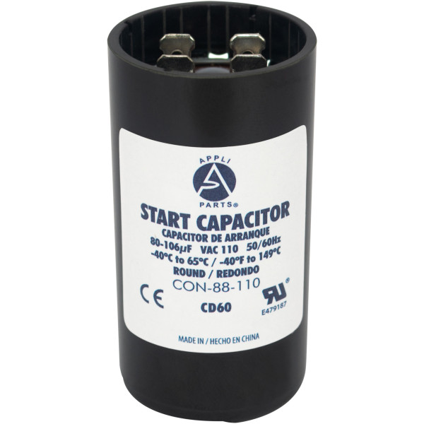 Appli Parts CON-88-110 Motor Start Capacitor 80-106 MFD uF, 110-125 VAC. Universal for Electric Motor Applications, 1.44 in Wide, 2.75 in Height