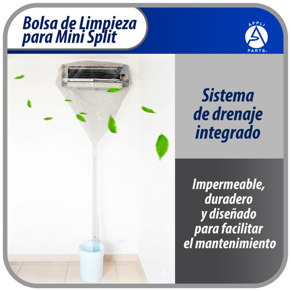 - Funda Protectora para Limpieza: Disenada para minisplits de 1 a 1.5 toneladas hasta 18,000 Btu y circunferencia de 2.6 m. Evita salpicaduras en paredes y pisos al limpiar, con forma convexa y salida inferior que mantiene el area seca y ordenada.