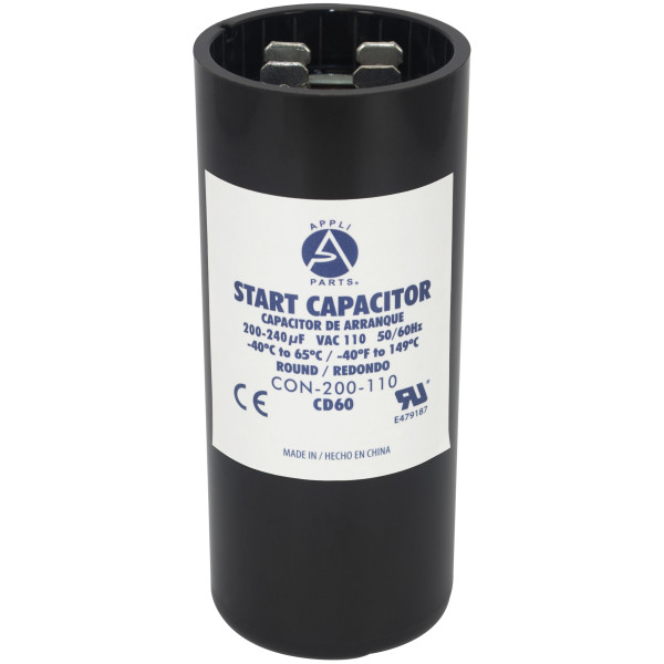 Appli Parts CON-200-110 Capacitor de Arranque 200-240 MFD (microfaradios) uF, 110-125 VAC. Universal para Motores Electricos, condensador de arranque de 3.7 cm de Diametro, 8.6 cm de Alto