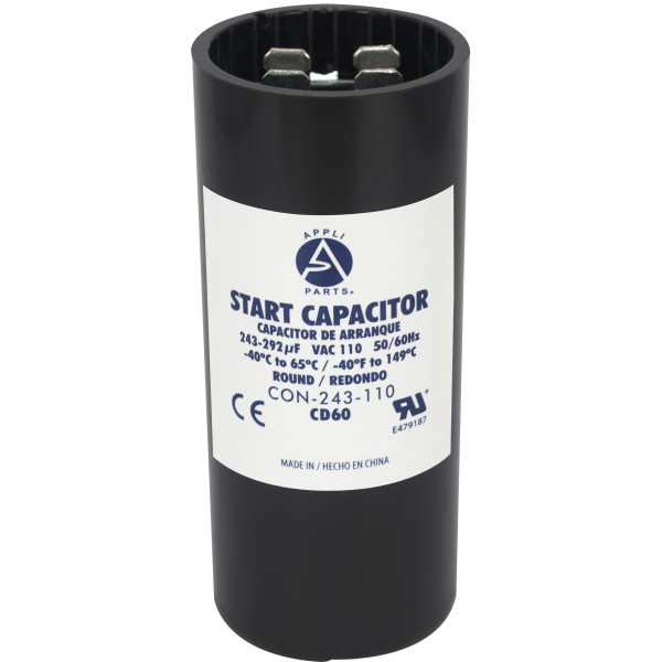 Appli Parts CON-243-110 Capacitor de Arranque 243-292 MFD (microfaradios) uF, 110-125 VAC. Universal para Motores Electricos, condensador de arranque de 3.7 cm de Diametro, 8.6 cm de Alto