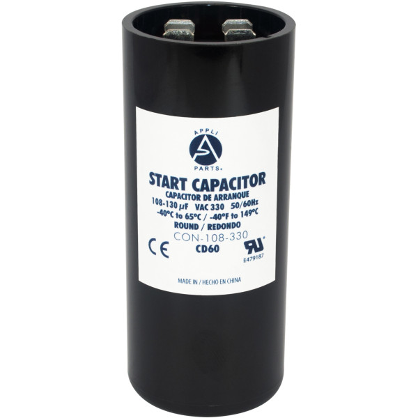Appli Parts CON-108-330 Capacitor de Arranque 108-130 MFD (microfaradios) uF, 330 VAC. Universal para Motores Electricos, condensador de arranque de 3.7 cm de Diametro, 8.6 cm de Alto