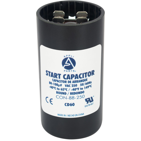 Appli Parts CON-88-250 Capacitor de Arranque 80-108 MFD (microfaradios) uF, 250 VAC. Universal para Motores Electricos, condensador de arranque de 3.7 cm de Diametro, 7 cm de Alto
